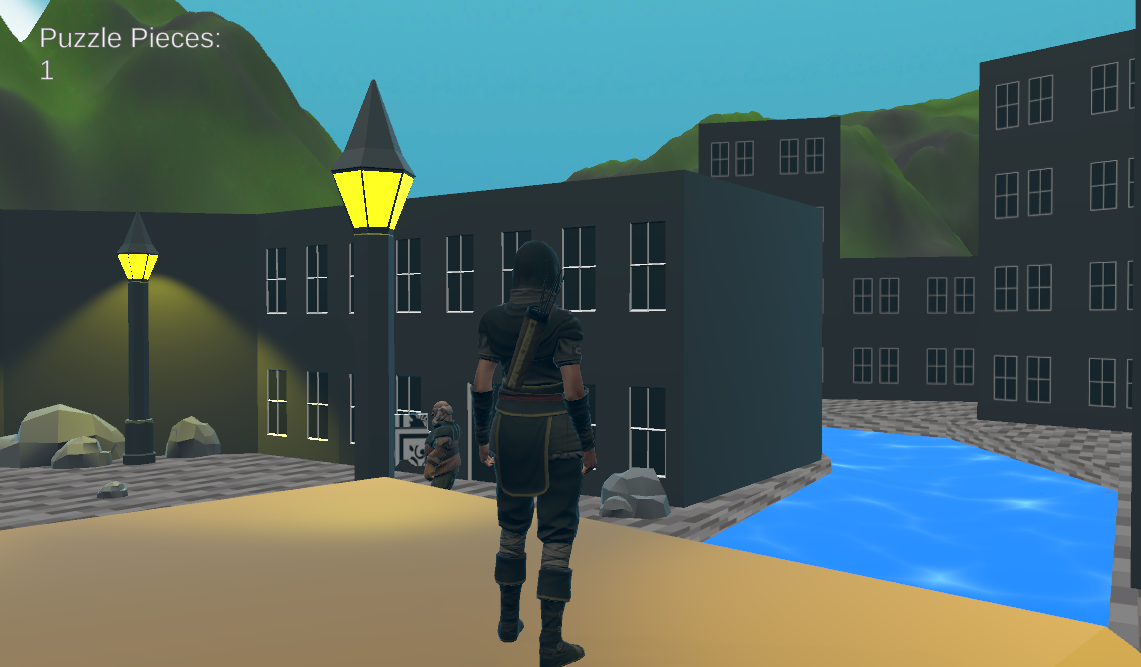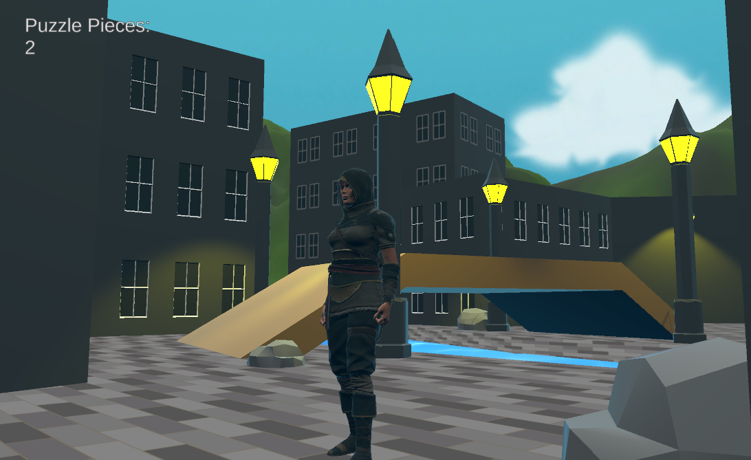 Embark on an exciting adventure where you must gather puzzle pieces scattered throughout a charming town to complete a quest for the QuestGiver! You will need to explore a town searching and collecting the pieces, trying not to get lost.